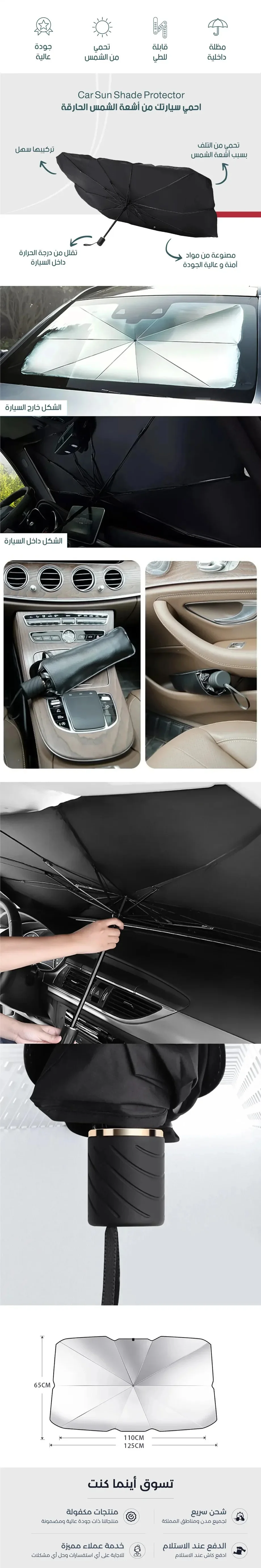 مظلة شمسية داخلية قابلة للطي للزجاج الأمامي