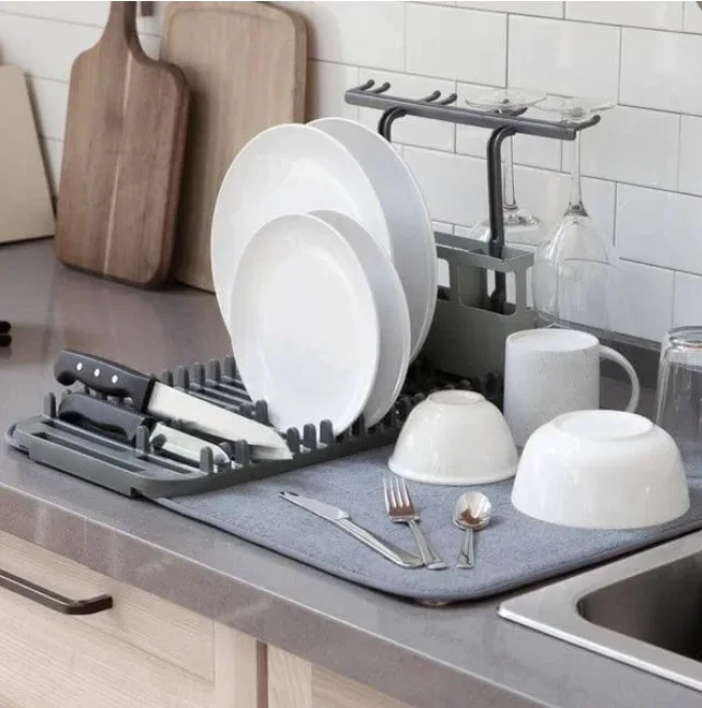 حصيرة ذكية لترك الأواني تنشف بسرعة + منظم مريح كيوفر لك المساحة 👌